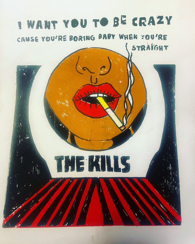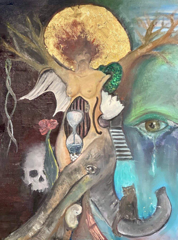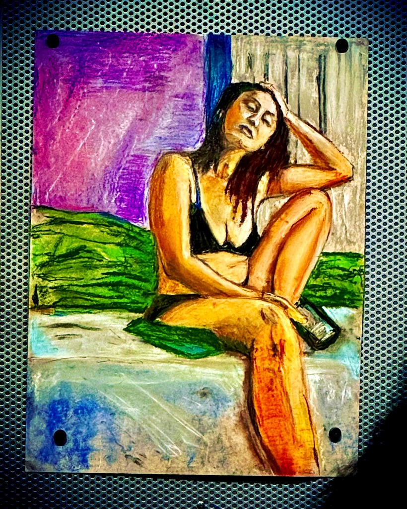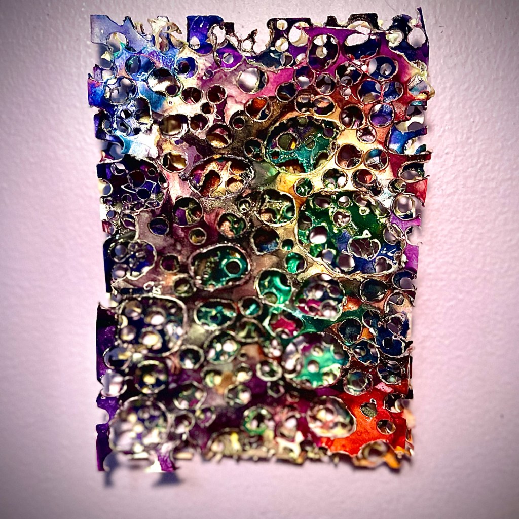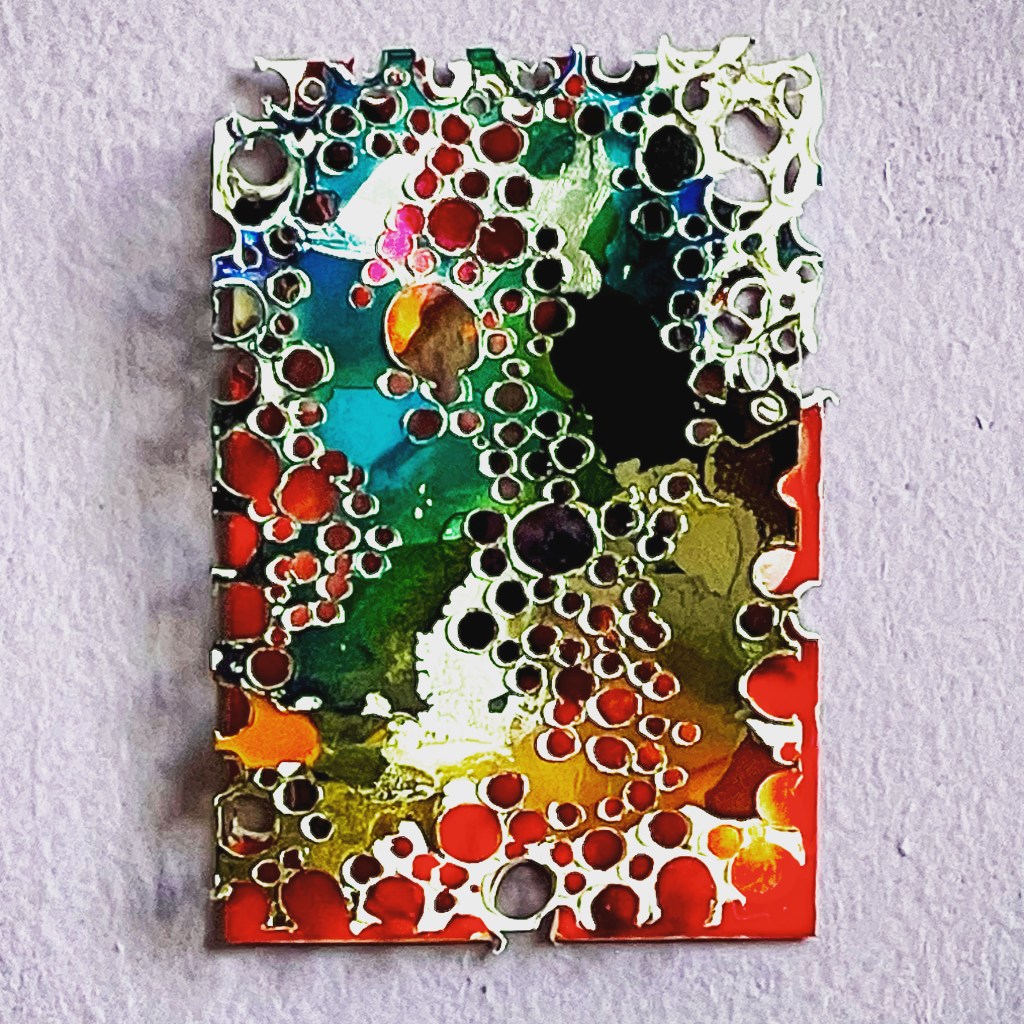 Creating art is how I survive. If I didn’t have art I would be dead. Life builds up inside of me: life and love, the good, the bad, the fucked up, myself, the cycle of creation and destruction, and constant change, and the things we cannot change. It builds up until I feel like I’m going to explode, then I purge myself by exploding safely onto the canvas. It’s all very bittersweet. I use all mediums, painting, drawing, collages, sculpting, mosaics, jewelry making, depending on my mood. I use acrylic, oil, watercolor, charcoal, graphite, paper, clay, textiles, wax, and anything I can find. I started drawing when I was about 2 years old, and I started painting at 11, and everything else I picked up along the way. Art just turns me on. I like the way it *feels* painting and sculpting. There’s little to no thought about what I’m creating. I’m an emotional painter. I’m not painting an idea, but I’m painting the emotion that comes with an idea. It’s pure inspiration that flows freely out of me. When the canvas is empty, it is pure, and I want to corrupt it. I want to pull the emotion out…